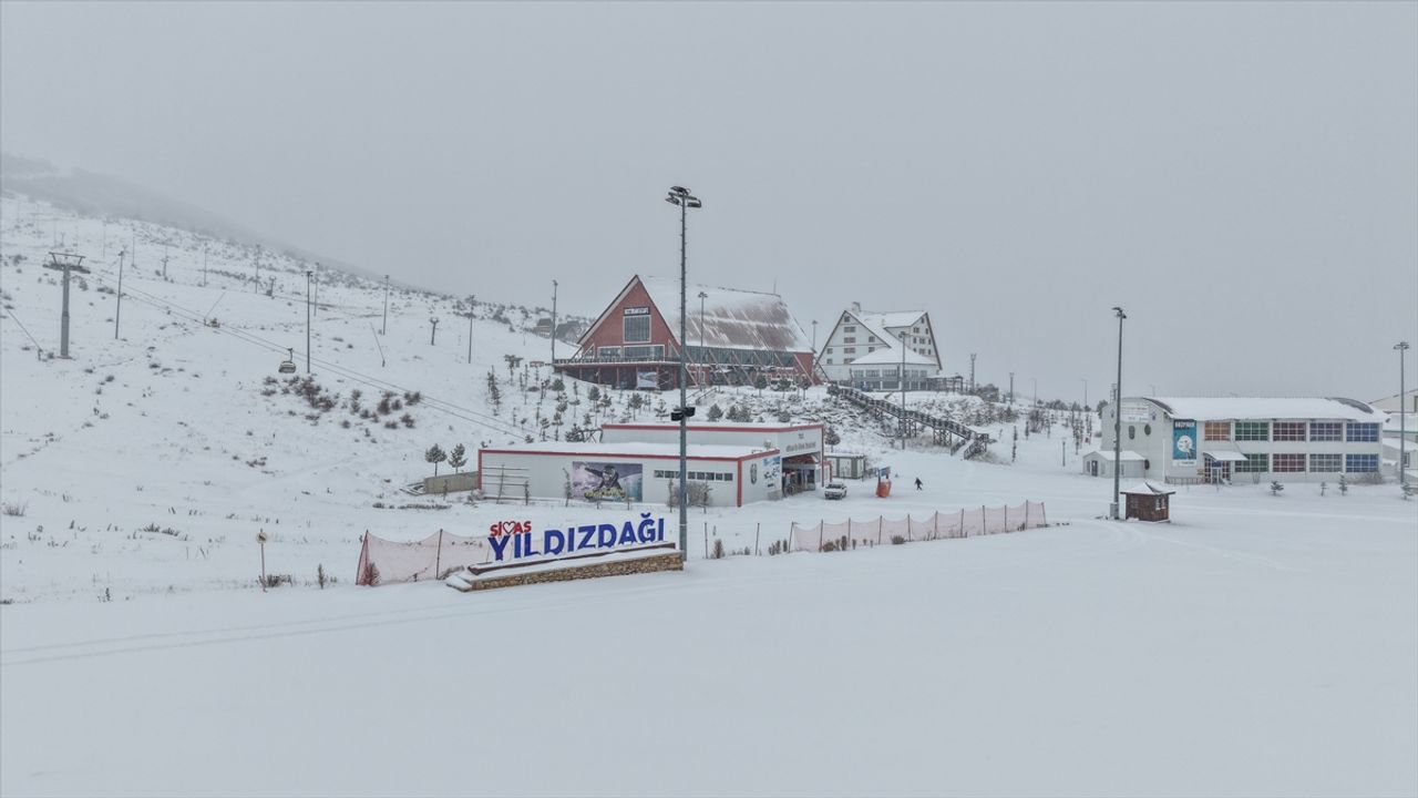 SİVAS (AA) - Sivas'ta Yıldız Dağı Kış Sporları ve Turizm Merkezi'nde kar yağışı aralıklarla etkisini sürdürüyor.