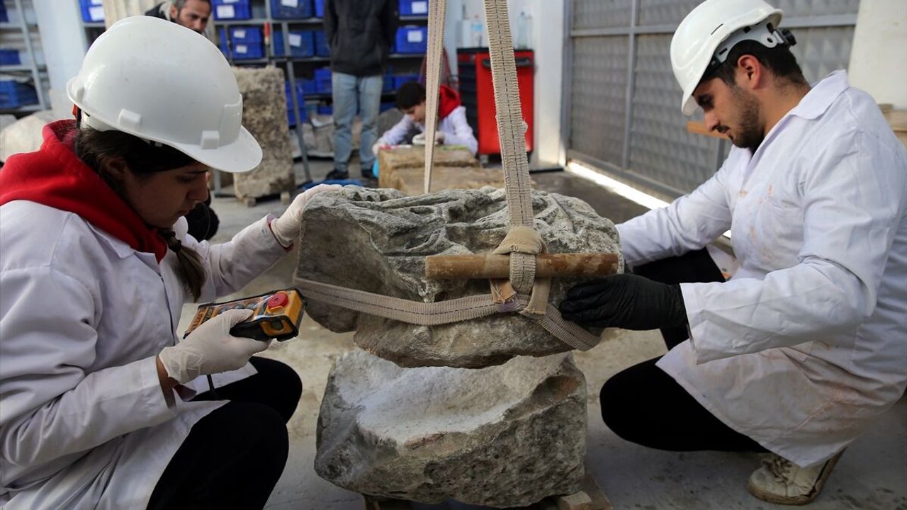 MUĞLA (AA) - DURMUŞ GENÇ - OSMAN AKÇA - Muğla'nın Yatağan ilçesindeki Stratonikeia Antik Kenti'nde eğitimlerinin bir bölümünü sahada uygulamalı olarak geçiren öğrenciler, kazılarda gün yüzüne çıkarılan tarihi eserleri taş atölyesinde restore ederek kültürel mirasın korunmasına katkı sağlıyor.