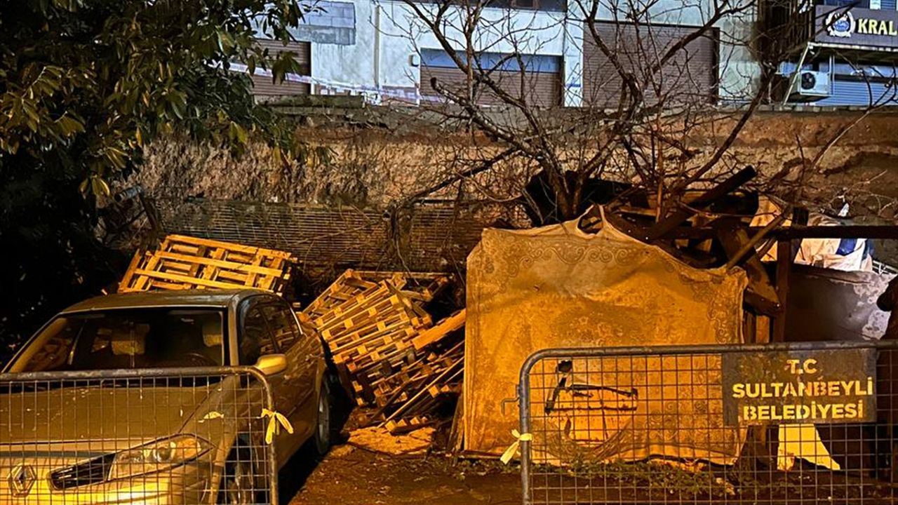 İSTANBUL (AA) - Sultanbeyli'de, istinat duvarının bir kısmı üzerine çöken park halindeki araçta hasar meydana geldi.