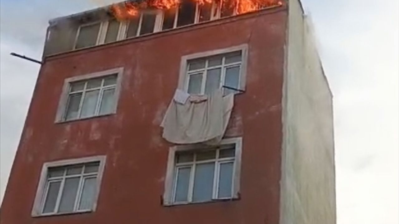 Cebeci Mahallesi 2587. Sokak'taki 5 katlı binanın son katında henüz belirlenemeyen nedenle yangın çıktı.