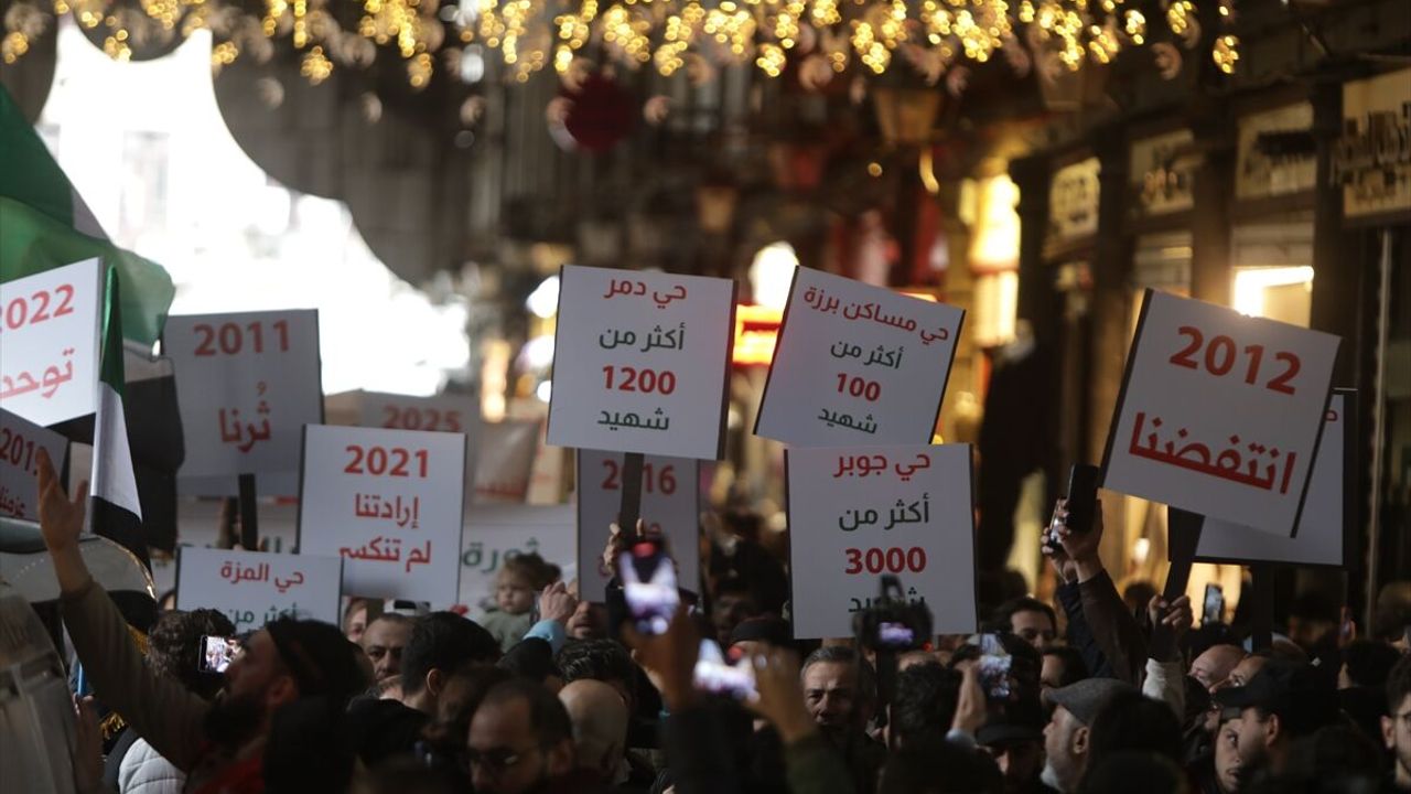 ŞAM (AA) - Suriye'de 2011 yılında başlayan halk hareketinin yıldönümünde, başkent Şam'da ilk protestoların gerçekleştirildiği güzergahta anma yürüyüşü düzenlendi.