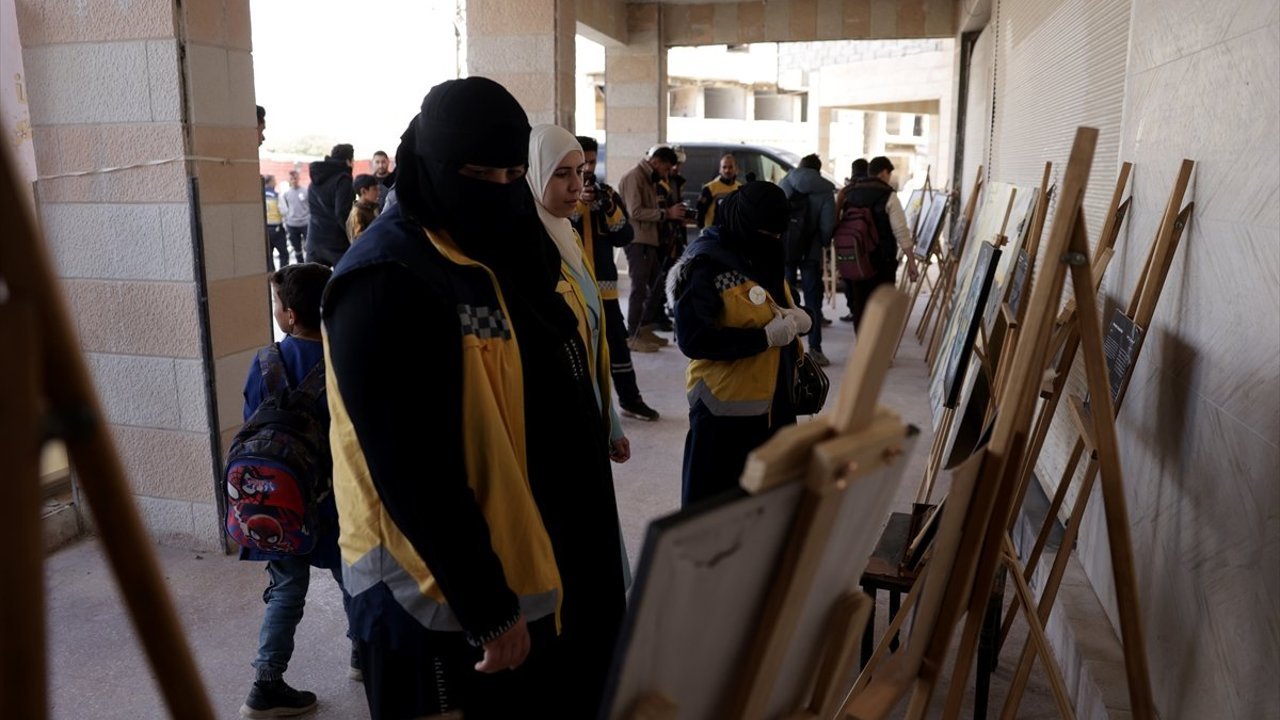 Şam'ın Duma ilçesindeki Şehitler Meydanı'nda düzenlenen etkinlikte, çok sayıda sanatçının kimyasal saldırıyı konu alan eserleri sergilendi.