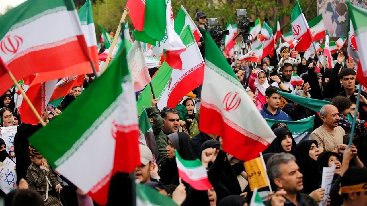 Çoğunluğu kadın ve çocuklardan oluşan katılımcılar, ellerinde İran bayraklarıyla ABD ve İsrail aleyhine sloganlar attı.