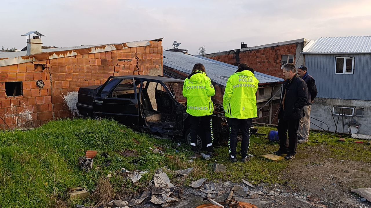 Çatıyı kontrol etmek üzere iş yerinin üzerine çıkan Ertopuz, burada hurda vaziyette bir otomobil bulunduğunu fark ederek durumu polise bildirdi.