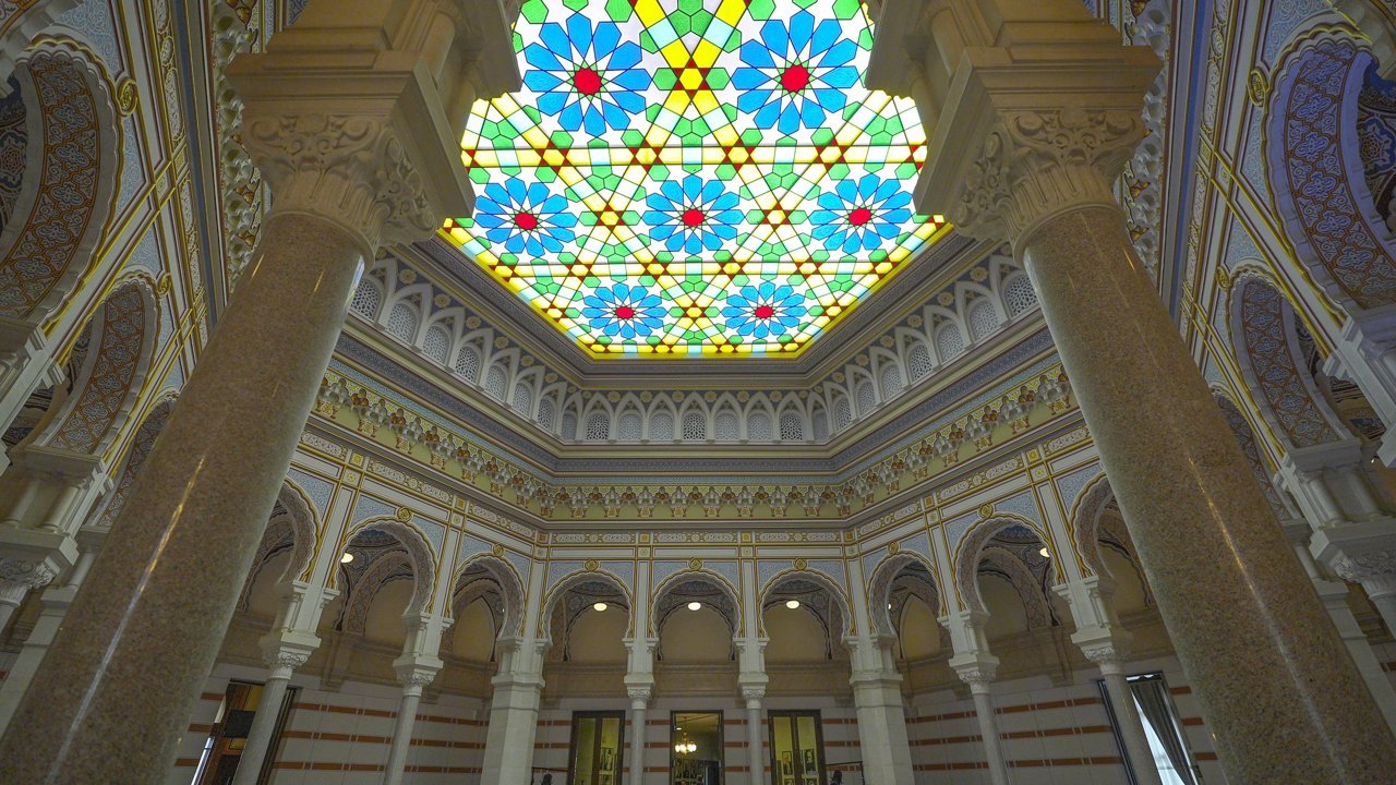 Avusturya-Macaristan İmparatorluğu döneminde inşa edilen yapı, Endülüs mimari tarzıyla Saraybosna'nın diğer tarihi binalarından belirgin biçimde ayrılıyor.