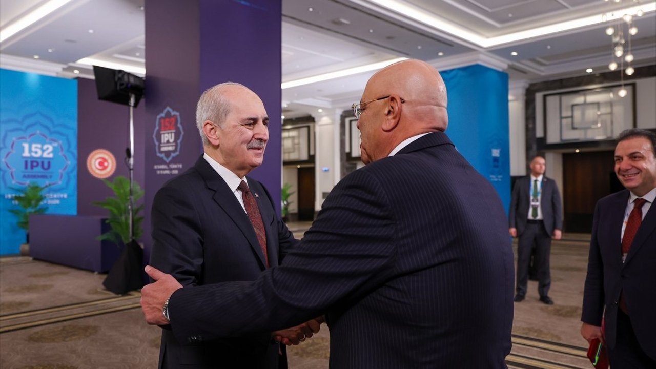 İSTANBUL (AA) - Türkiye Büyük Millet Meclisi (TBMM) Başkanı Numan Kurtulmuş, Parlamentolar Arası Birlik (PAB) 152'nci Genel Kurulu dolayısıyla İstanbul'da bulunan Mısır Temsilciler Meclisi Başkanı Hisham Badawy ile bir araya geldi.