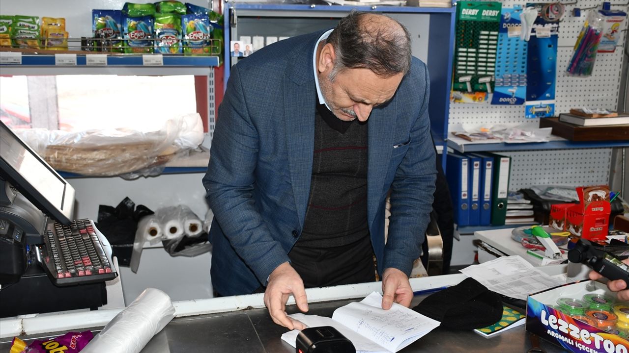 Veliköy Mahallesi'ndeki esnafı ziyaret eden hayırsever, veresiye defterlerinde kayıtlı ve ödeme güçlüğü yaşayan ailelere ait borçların tutarını hesaplatıp nakit olarak kapattı.