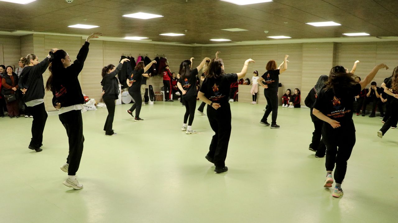 Kentteki farklı okullarda görev yapan öğretmenler, sosyal ve kültürel faaliyetler kapsamında buluşarak Türkiye'nin farklı bölgelerine ait halk oyunları figürlerini çalışıyor.