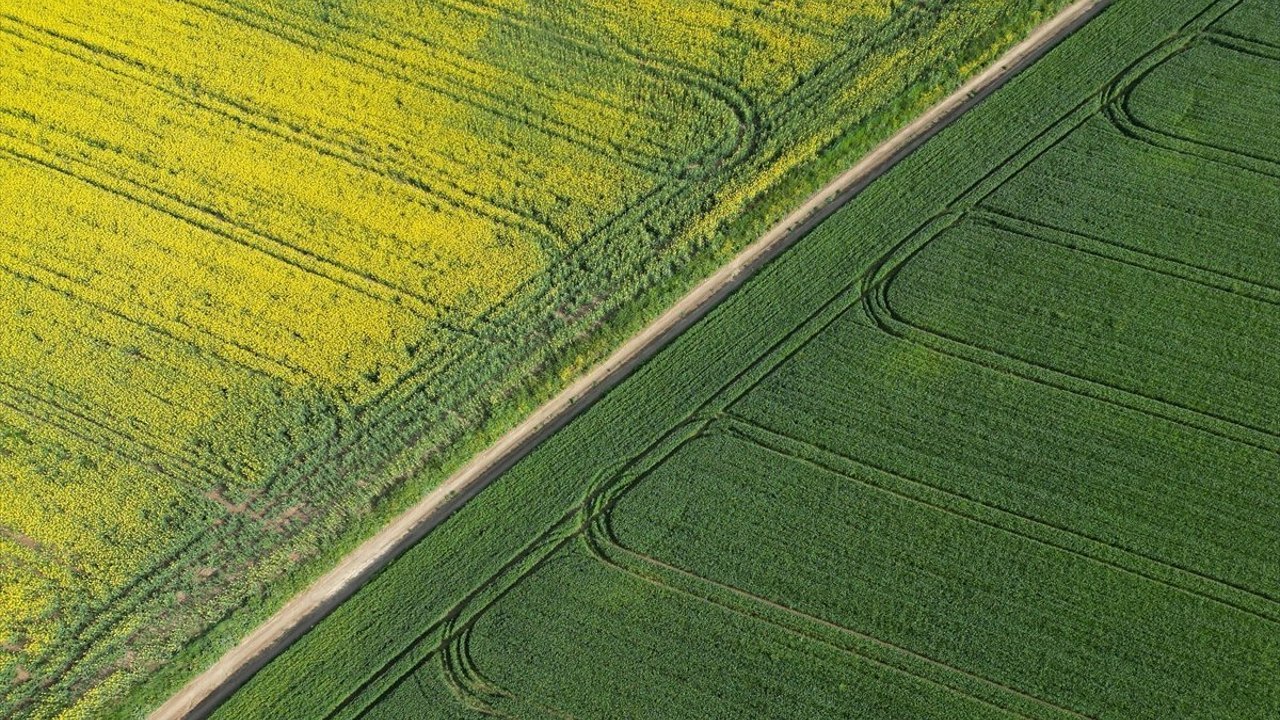 Kent genelinde çiçek açan kanola bitkileri sarı tonlarıyla dikkati çekerken, yeşeren buğday tarlaları da manzaraya canlılık kattı.