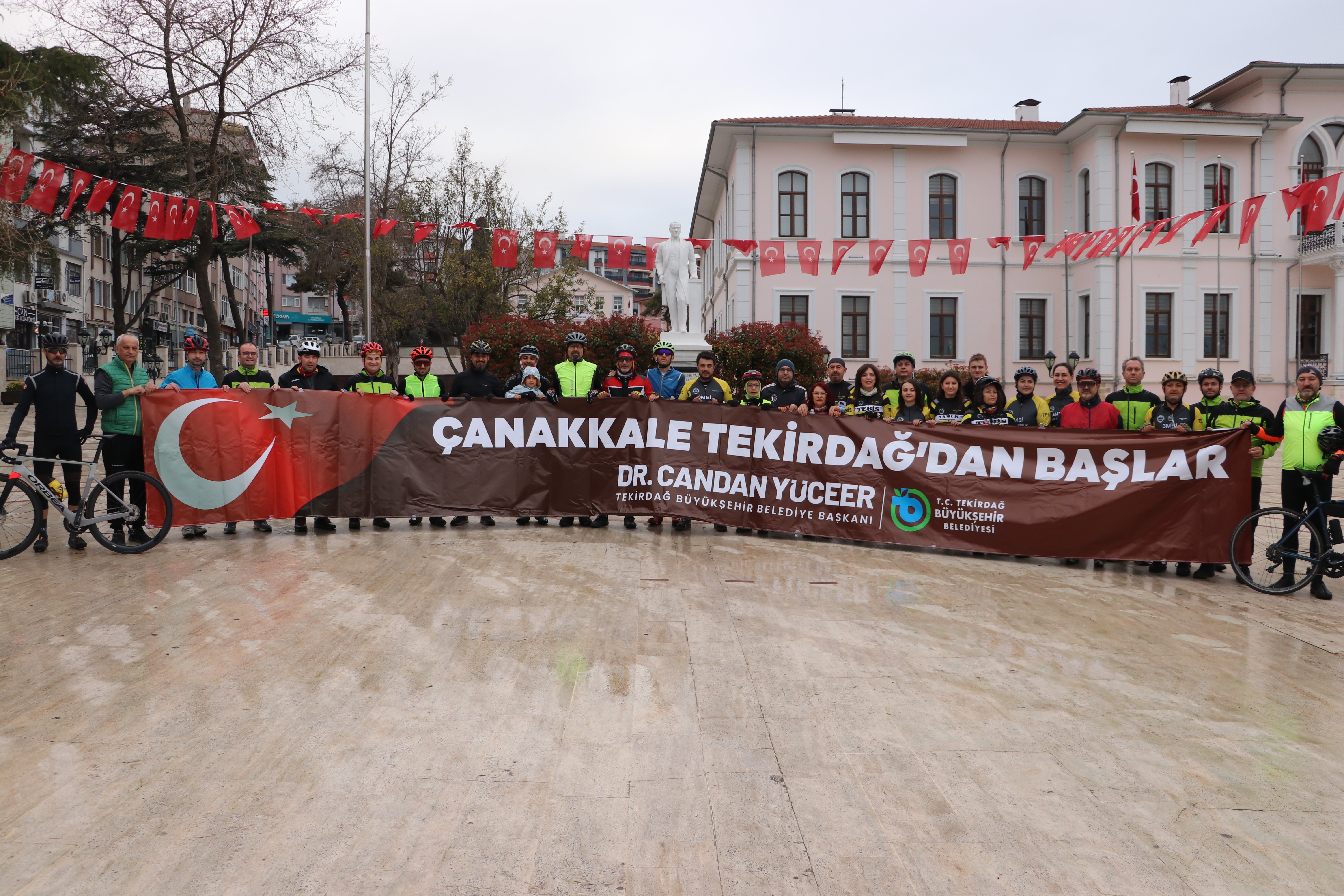Bisikletliler, Tekirdağ Valiliği önündeki Atatürk Anıtı'nda bir araya geldi.