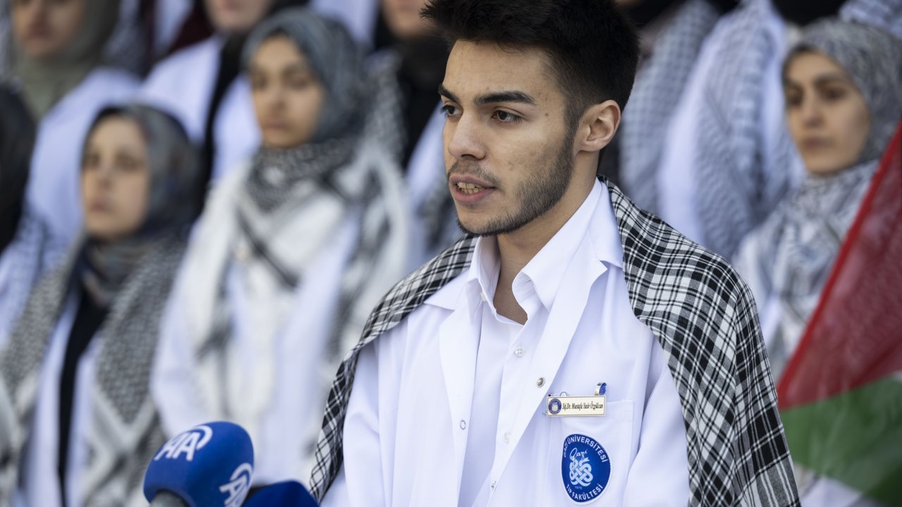 Gazi Üniversitesi Tıp Fakültesi öğrencileri olarak Gazze'deki meslektaşlarının çaresizliğini yüreklerinde hissettiklerini söyleyen Özgülcan, şunları kaydetti: