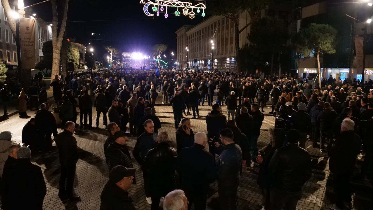 TİRAN (AA) - Arnavutluk'taki ana muhalefet partisi Demokratik Partinin (PD) çağrısıyla başkent Tiran'da toplanan binlerce gösterici, ülkede yolsuzluk yapıldığını savunarak Başbakanlık binası önünde gösteri düzenledi.