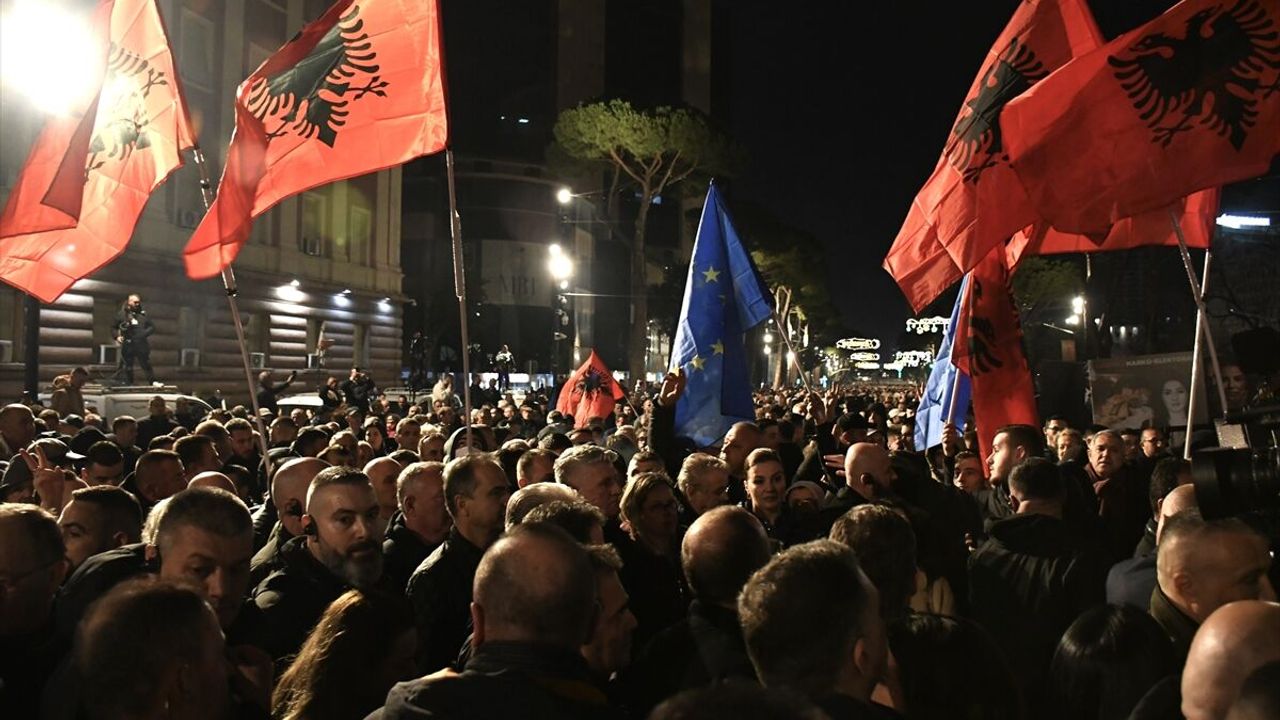 TİRAN (AA) - Arnavutluk'taki ana muhalefet partisi Demokratik Partinin (PD) çağrısıyla başkent Tiran'da toplanan binlerce gösterici, ülkede yolsuzluk yapıldığını savunarak Başbakanlık binası önünde gösteri düzenledi.