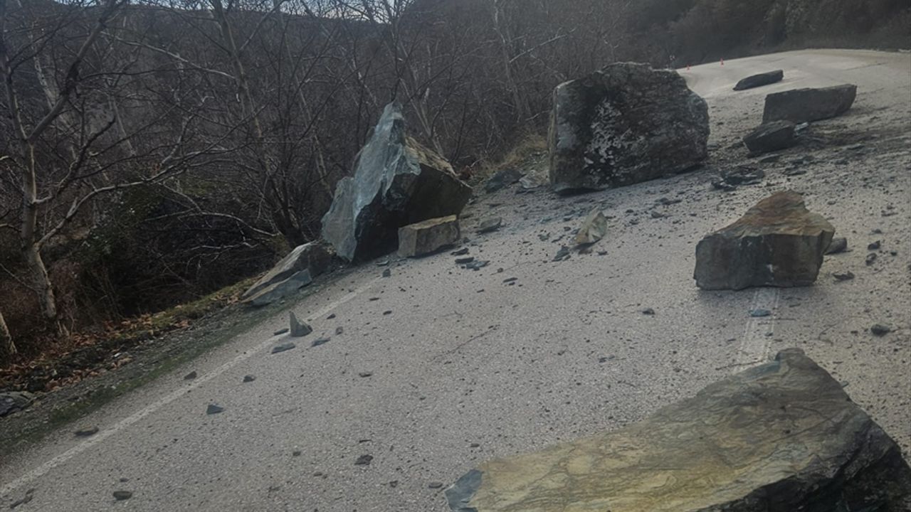 Turhal-Yenisu köyü yolu, heyelan sonucu düşen kayalar nedeniyle ulaşıma kapandı.