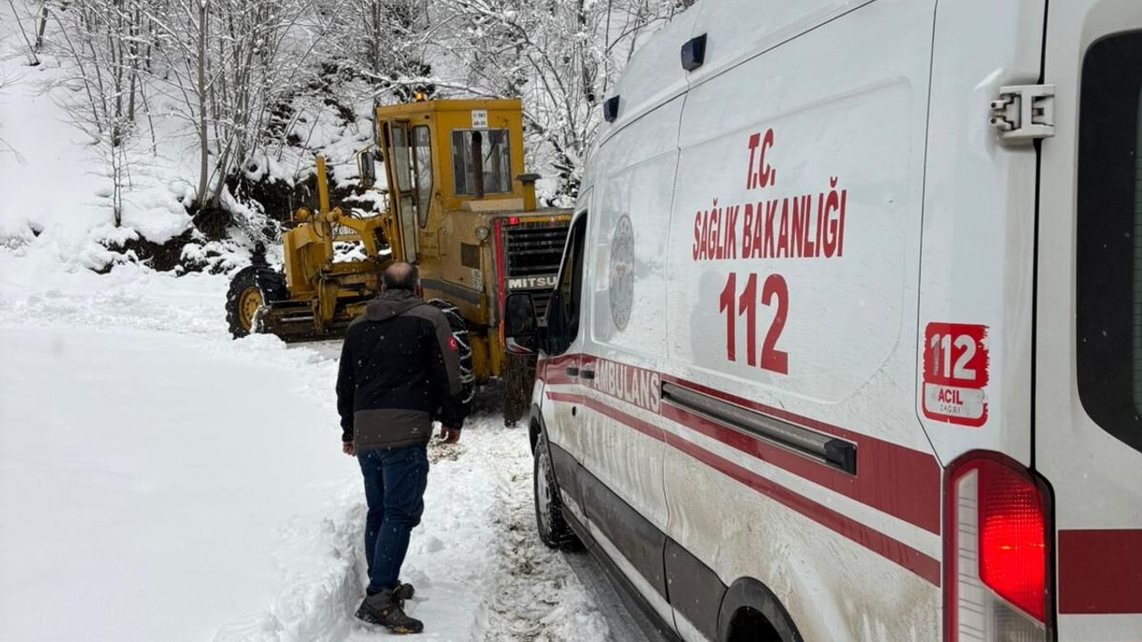 Ambulansın kardan çıkamaması üzerine İl Özel İdaresi ekiplerinden yardım istendi.