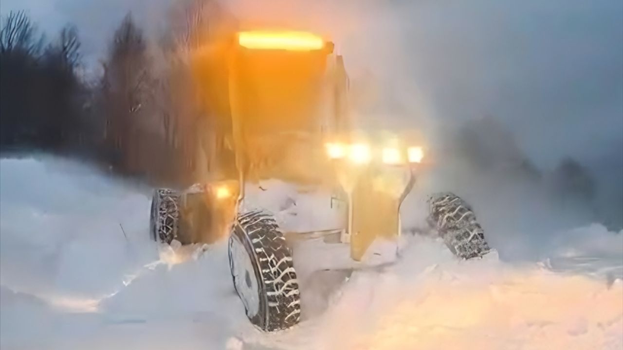 İl Özel İdaresi ekipleri, kar nedeniyle mahsur kalan minibüste bulunanları kurtararak yolu ulaşıma açtı.