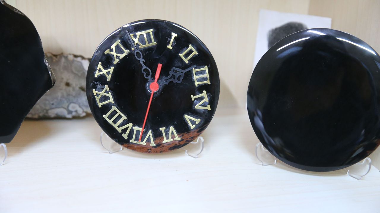 Kars'ın Sarıkamış ilçesinden getirilen obsidyen taşını işlediklerini belirten Can, 'Niğde ve farklı yerlerden de taş getirttik ama Sarıkamış'tan getirdiğimiz taşı kullanıyoruz artık. Taştan ayna yapmak bir hafta sürebiliyor. Her aşaması var. Kesimiydi, parlatmasıydı, her makinede ayrı ayrı uğraşıyoruz. Tamamen el emeği, el işçiliği.' ifadelerini kullandı.