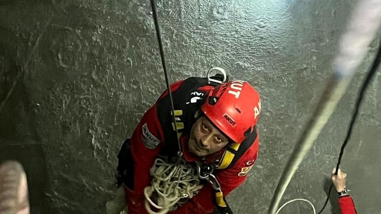 Kurtarma çalışması başlatan ekipler, halat yardımıyla indikleri çukurdaki köpeği mahsur kaldığı yerden çıkardı.