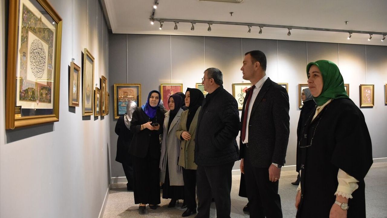 Kelimeişehadet, Lafza-i Celal, İsm-i Nebi, ayetikerimeler, sureler, beyitler ve tezhip tablolarının yer aldığı sergiyi gezen davetliler, usta öğreticilerden eserlerle ilgili bilgi aldı.
