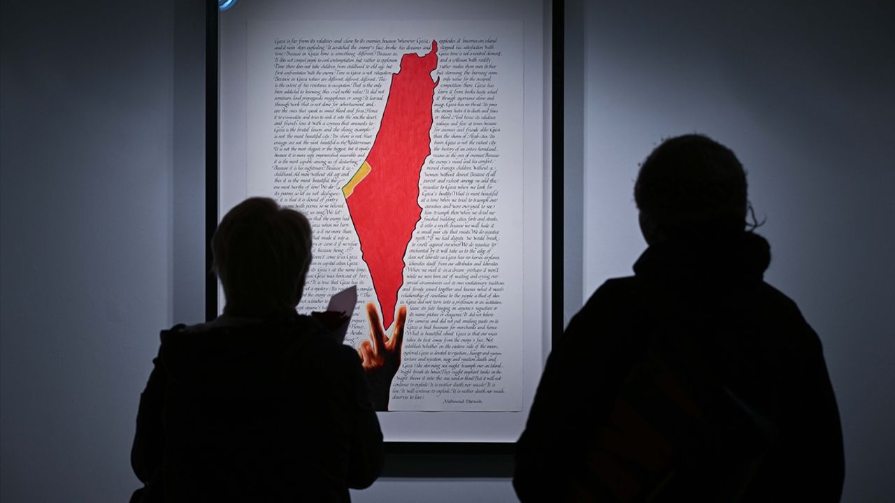 LONDRA (AA) - Türk sanatçı Ahmet Yusuf Aygeç'in Filistinlilerin yaşadıklarını, Filistin'in ulusal şairi Mahmud Derviş'in dizeleriyle harmanlayarak anlattığı 'Sürgündeki Zeytin Ağacına Posterler' Sergisi, Londra'da sanatseverlerle buluştu.