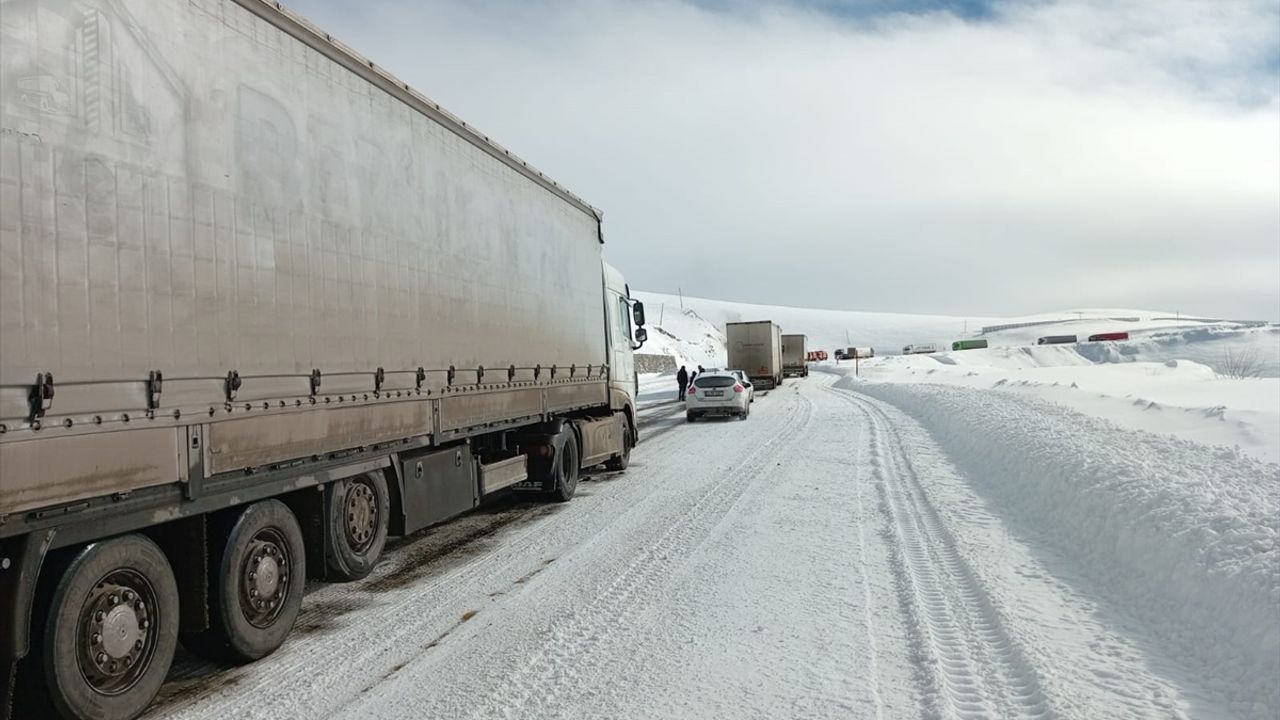 ARDAHAN (AA) - Ardahan'da kar yağışının neden olduğu buzlanmadan dolayı 11 tır yolda kaldı.