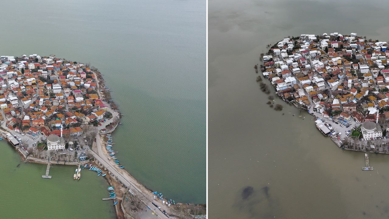 Önceki yılların aynı dönemi ile şimdiki dron fotoğrafları su seviyesindeki yükselmeyi gözler önüne seriyor.