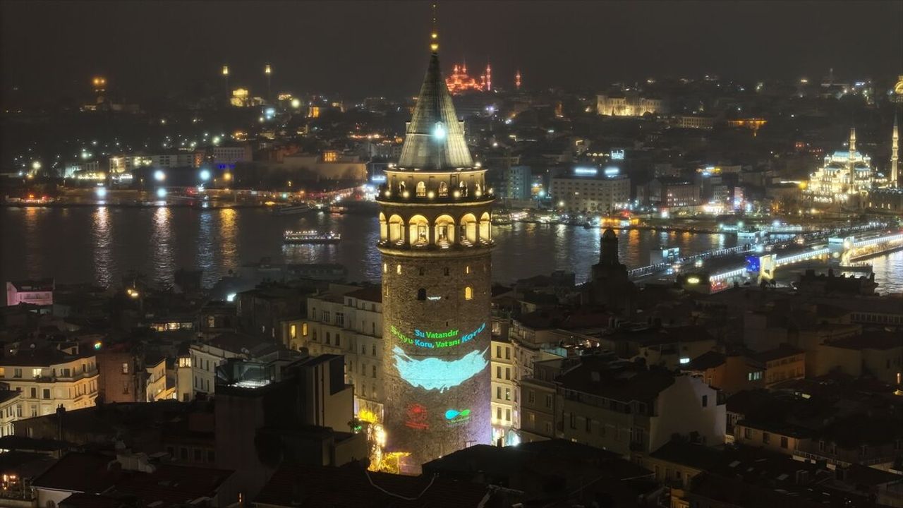 İSTANBUL (AA) - 'Ulusal Su Verimliliği Seferberliği' dolayısıyla 22 Mart Dünya Su Günü'nde düzenlen etkinlikler kapsamında, İstanbul'un simge yapılarına yazılı ve görsel mesajlar yansıtılarak farkındalık oluşturuldu.