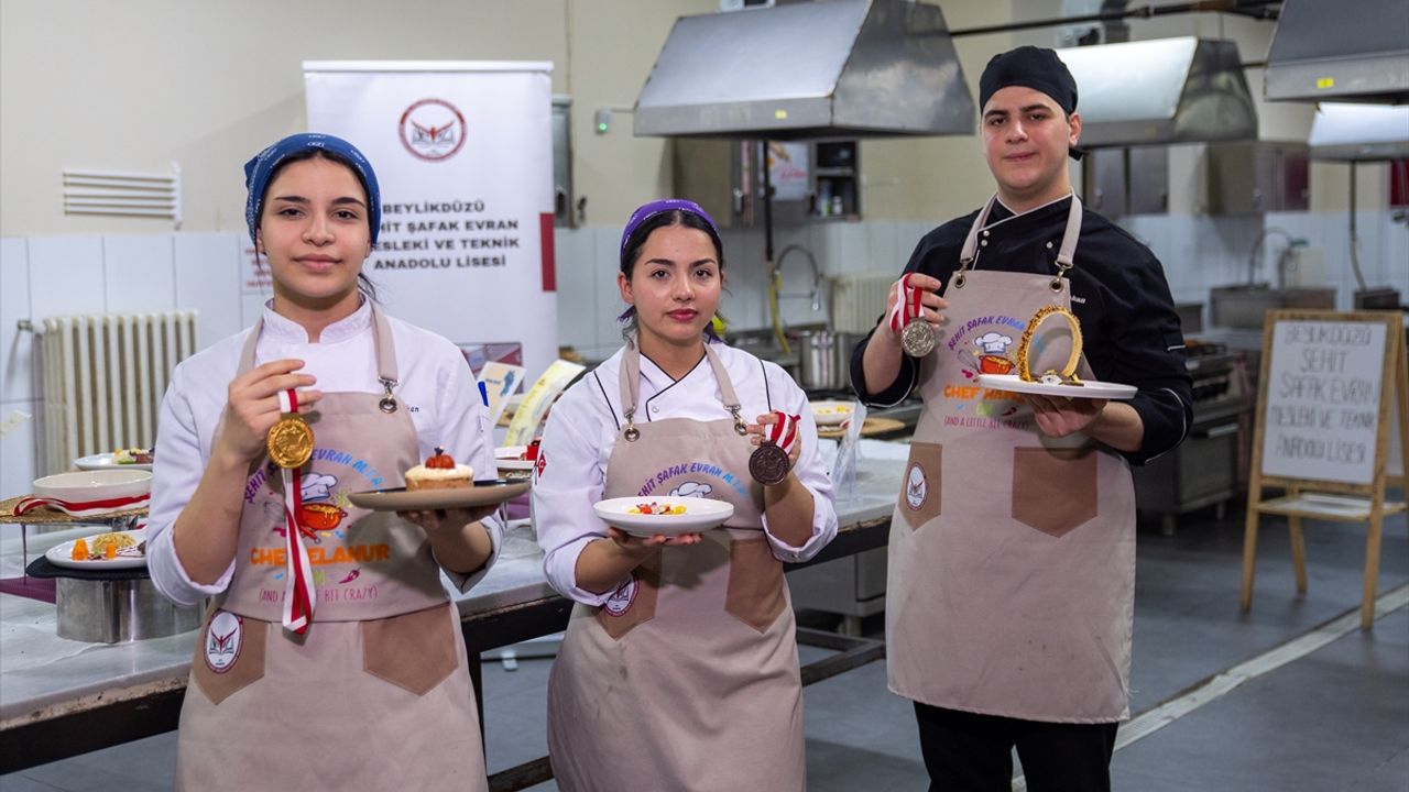 İSTANBUL (AA) - MİKAİL BIYIKLI - Beylikdüzü Şehit Şafak Evran Mesleki ve Teknik Anadolu Lisesi öğrencileri, okulda aldıkları uygulamalı mutfak eğitim sayesinde Uluslararası Gastronomi Yarışması için hazırladıkları 12 farklı tabakla dereceler elde ederek, çeşitli madalyalar kazandı.