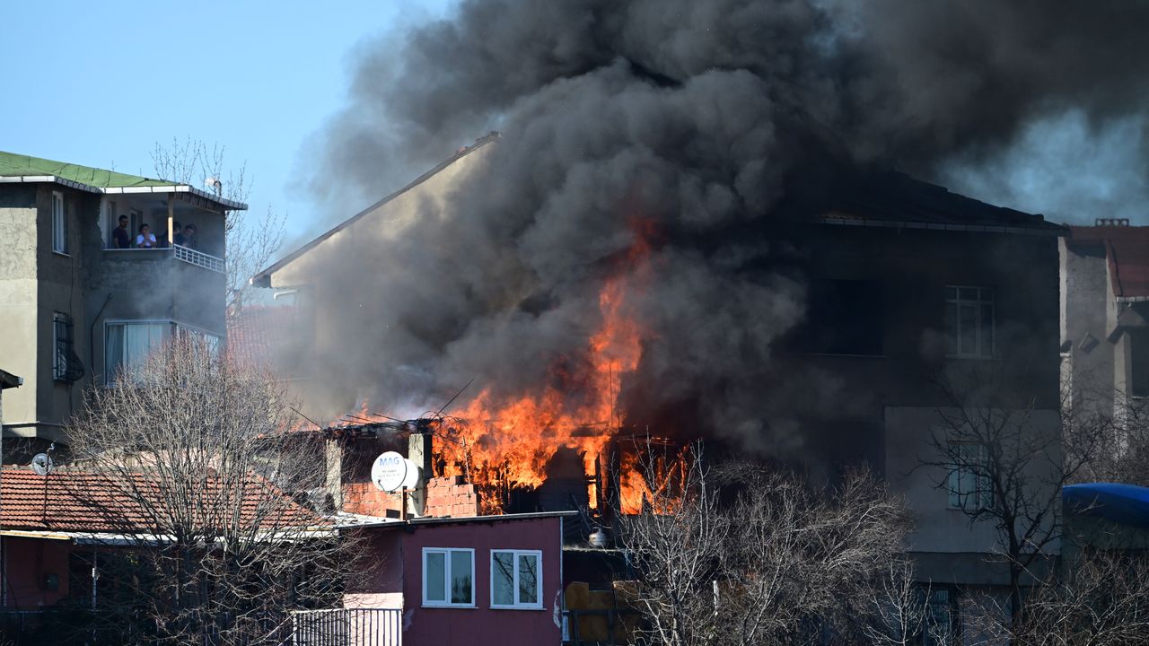 İSTANBUL (AA) - Ümraniye'de gecekondunun bahçesinde çıkan ve yanındaki 2 katlı evin çatısına sıçrayan yangın itfaiye ekiplerince söndürüldü.