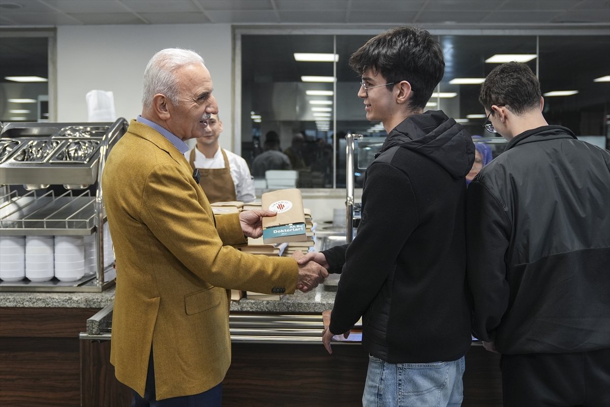 Belediyenin yemekhanesinde akşam yemeği hizmetinden ücretsiz yararlanan 553 üniversite öğrencisine yönelik düzenlenen etkinlikte, öğrencilerin tatlı tabaklarına kitaplar bırakıldı.