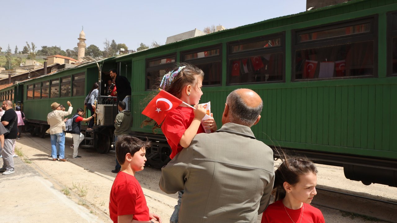 Osmanlı döneminin önemli ulaşım projelerinden biri olan Hicaz Demir Yolu'nun tarihi atmosferinde gerçekleştirilen etkinlikte, Türk ve Ürdün bayraklarıyla donatılmış trenle tarihi raylarda çocuklara tur düzenlendi.