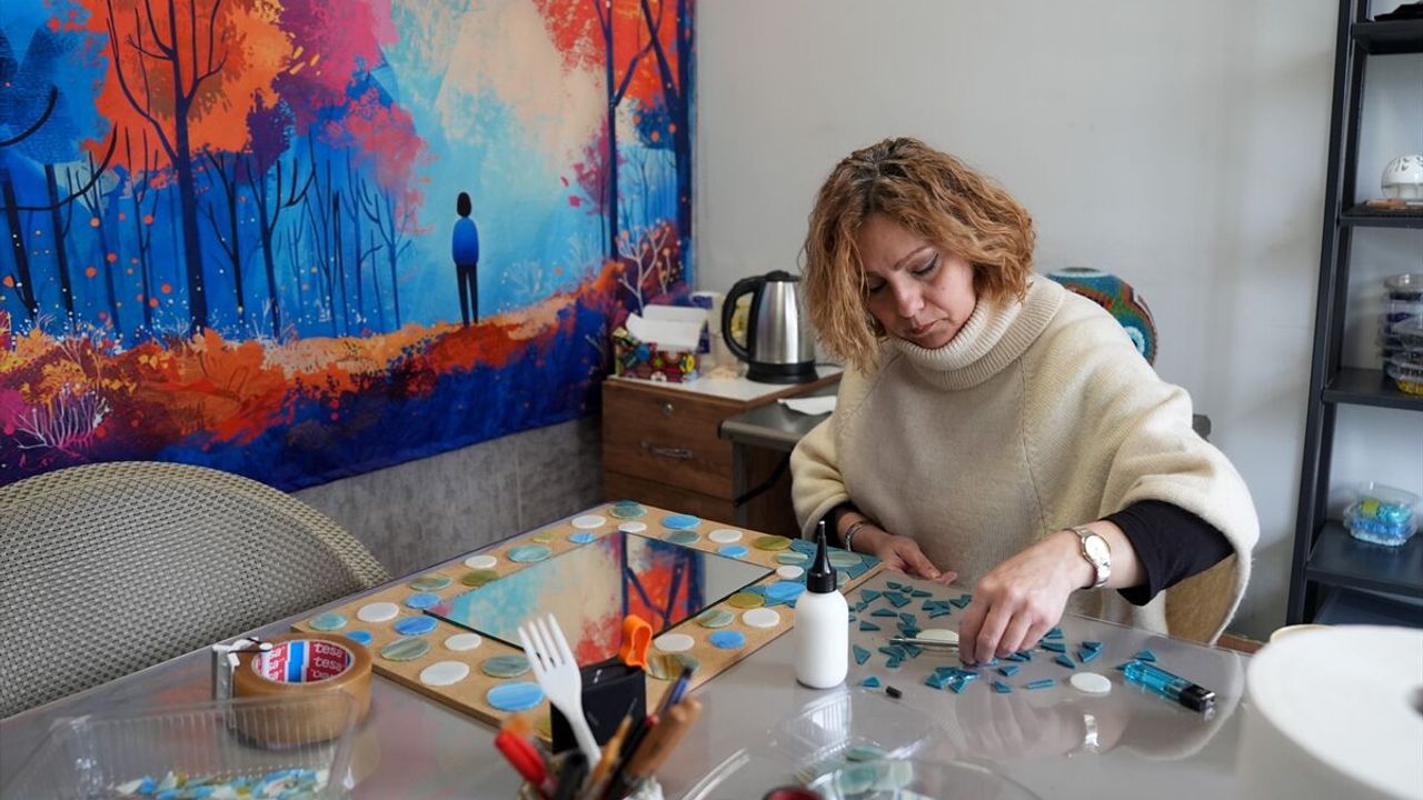 Özkan, AA muhabirine yaptığı açıklamada, yaklaşık 17 yıl önce babasının vefatından sonra yaşadığı buhran döneminin ardından, eşinin desteğiyle mozaik sanatıyla tanıştığını anlattı.
