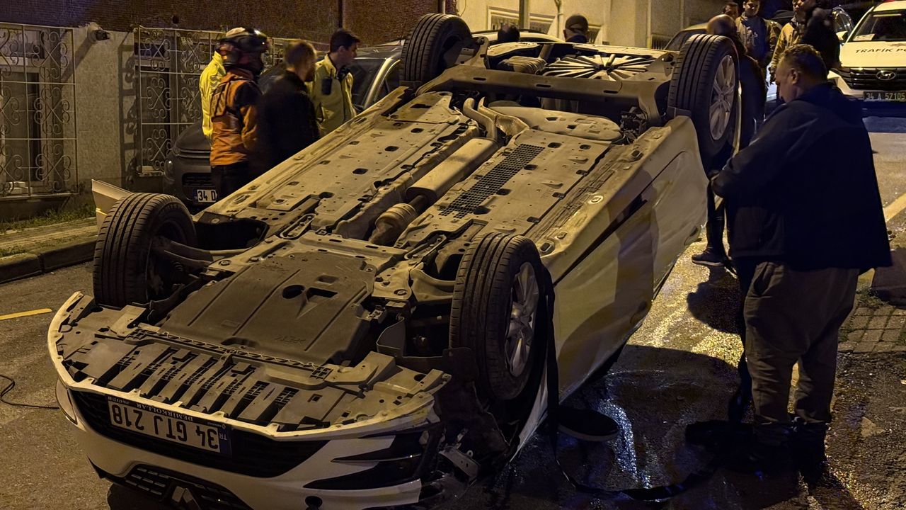 İcadiye Mahallesi Ayarcıbaşı Sokak'ta sürücüsünün kimliği öğrenilemeyen 34 GTJ 218 plakalı otomobil, yokuş aşağı inerken park halindeki 3 otomobile çarparak devrildi.