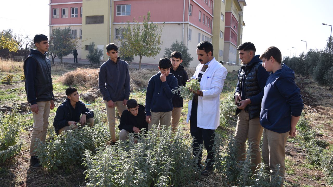 ŞANLIURFA (AA) - CUMA SARI - Şanlıurfa'nın Siverek ilçesinde lise öğrencileri, okul bahçesinde oluşturulan uygulama alanında bir yandan tarımı öğrenirken diğer yandan ise bölgenin geleneksel ürünlerine alternatif olarak tıbbi ve aromatik bitki yetiştiriyor.