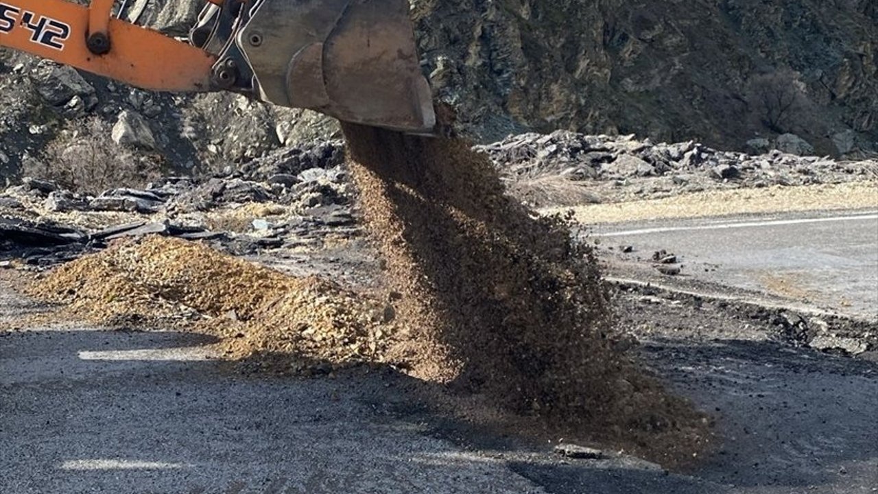 Haber verilmesi üzerine bölgeye yönlendirilen Karayolları 114. Şube Ekipleri, yolda önlem alarak çalışma başlattı.
