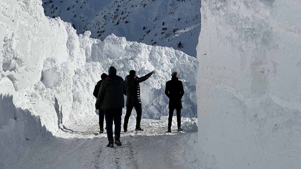 Çığ tehlikesi nedeniyle 4 gündür kapalı olan yol, biriken karların temizlenmesinin ardından ulaşıma açılacak.