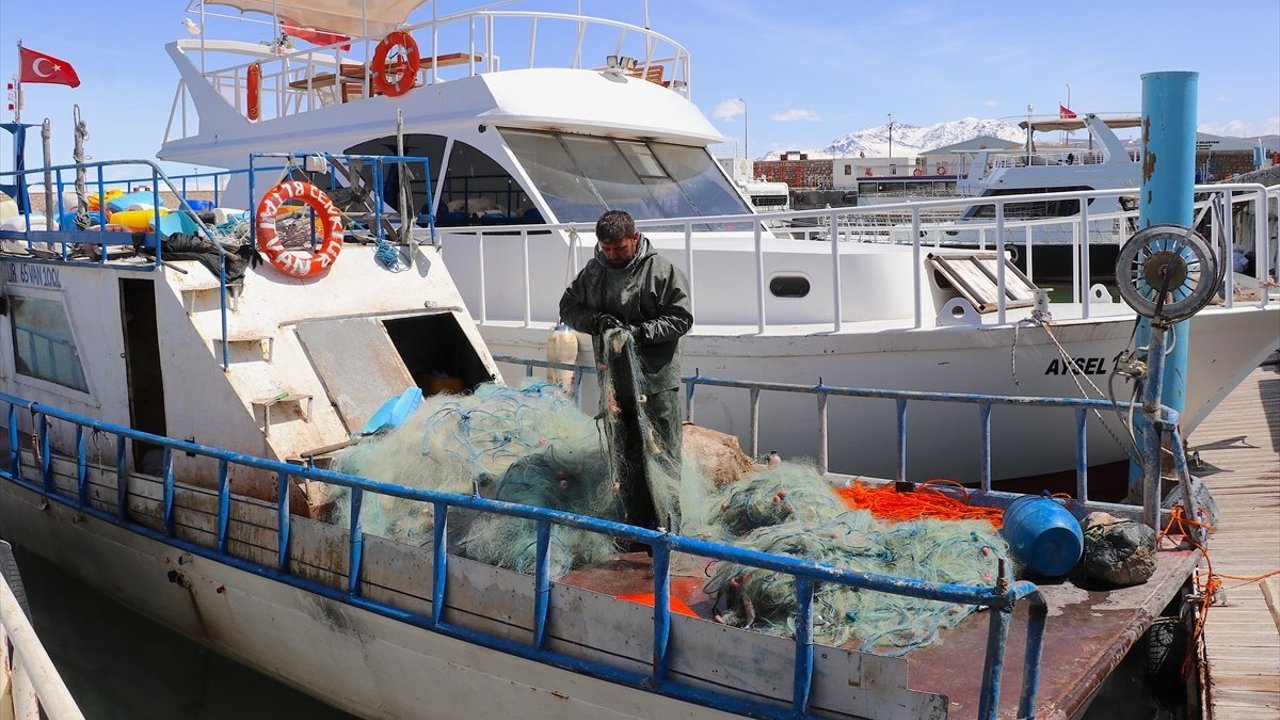 Van İl Tarım ve Orman Müdürü Turgay Şişman da Edremit ilçesindeki iskeleye çekilen balıkçı teknelerinde incelemelerde bulundu, beraberindeki Su Ürünleri Şube Müdürü Muhammet Demir'den bilgi aldı.