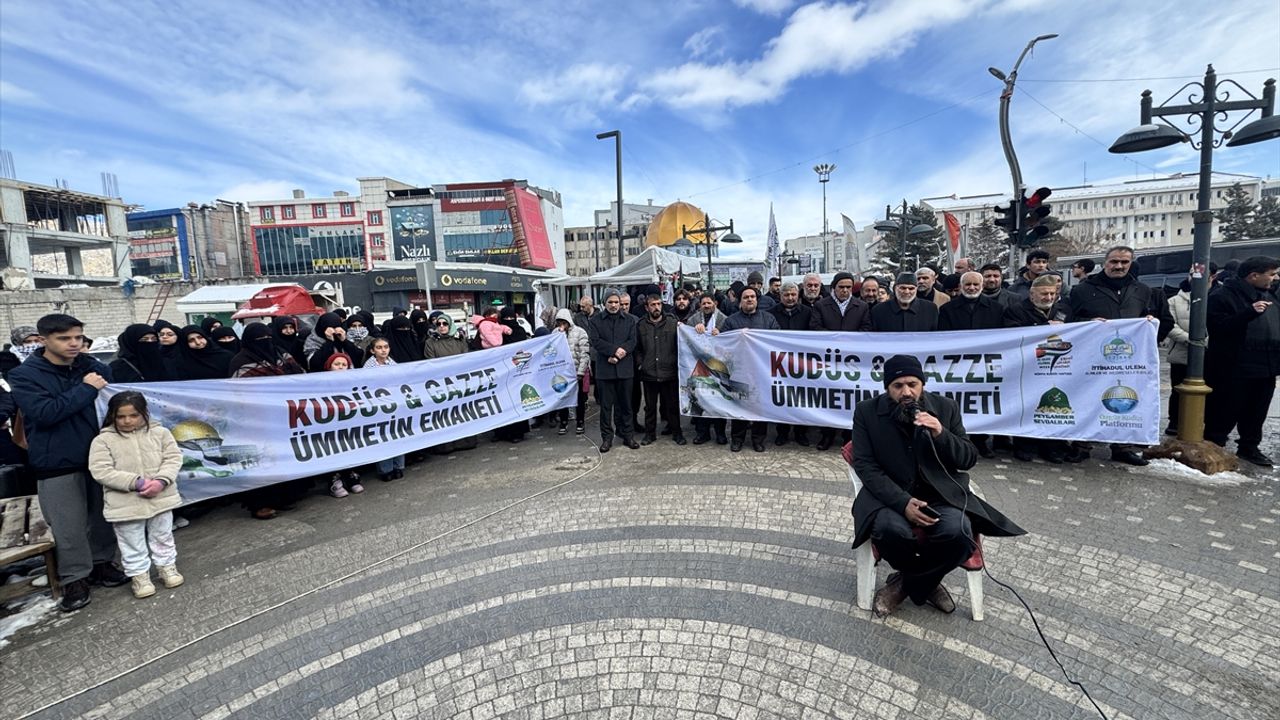 VAN (AA) - Van'da 'Dünya Kudüs Haftası' kapsamında bir araya gelen vatandaşlar, İsrail'in Kudüs ve Gazze'ye yönelik saldırılarını protesto etti.