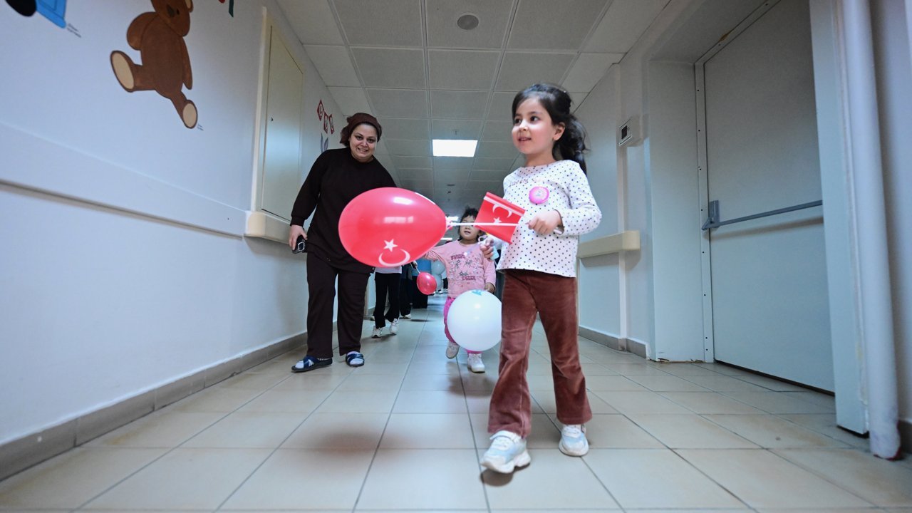 Çeşitli rahatsızlıkları nedeniyle bayramı hastanede geçirmek zorunda kalan çocukların odalarını Türk bayrağı ve balonlarla süsleyen gençler, çeşitli etkinliklerle çocukların gönüllerine dokunup bayram coşkusu yaşamalarını sağlıyor.