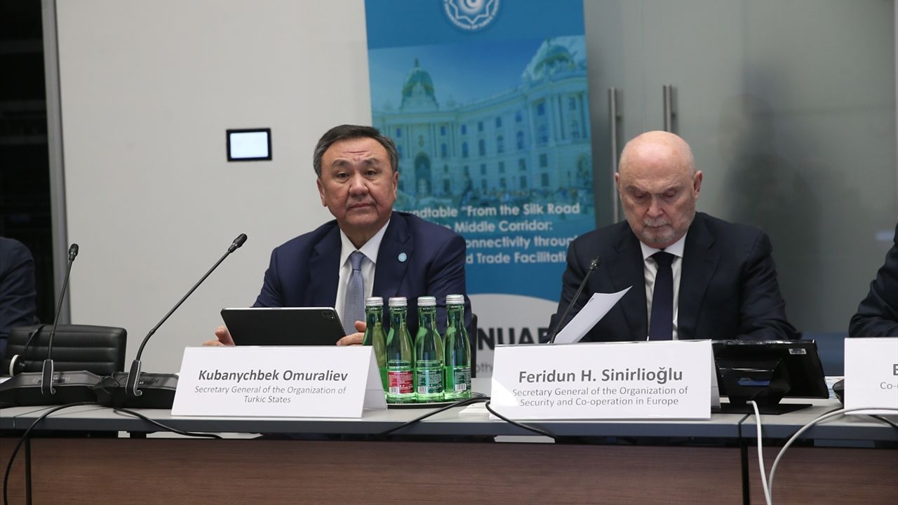 Türk Devletleri Teşkilatı'nın (TDT) Viyana'da düzenlediği 'Türk Haftası' programı kapsamında Avrupa Güvenlik ve İşbirliği Teşkilatı (AGİT) bünyesinde yapılan 'İpek Yolu'ndan Orta Koridor'a: Ulaştırma ve Ticaretin Kolaylaştırılması Yoluyla Bağlantısallığın Teşviki' başlıklı yuvarlak masa toplantısına, AGİT Genel Sekreteri Feridun Sinirlioğlu, TDT Genel Sekreteri Kubanıçbek Ömüraliyev, çok sayıda diplomatik misyon temsilcisinin yanı sıra iş dünyasından isimler katıldı.