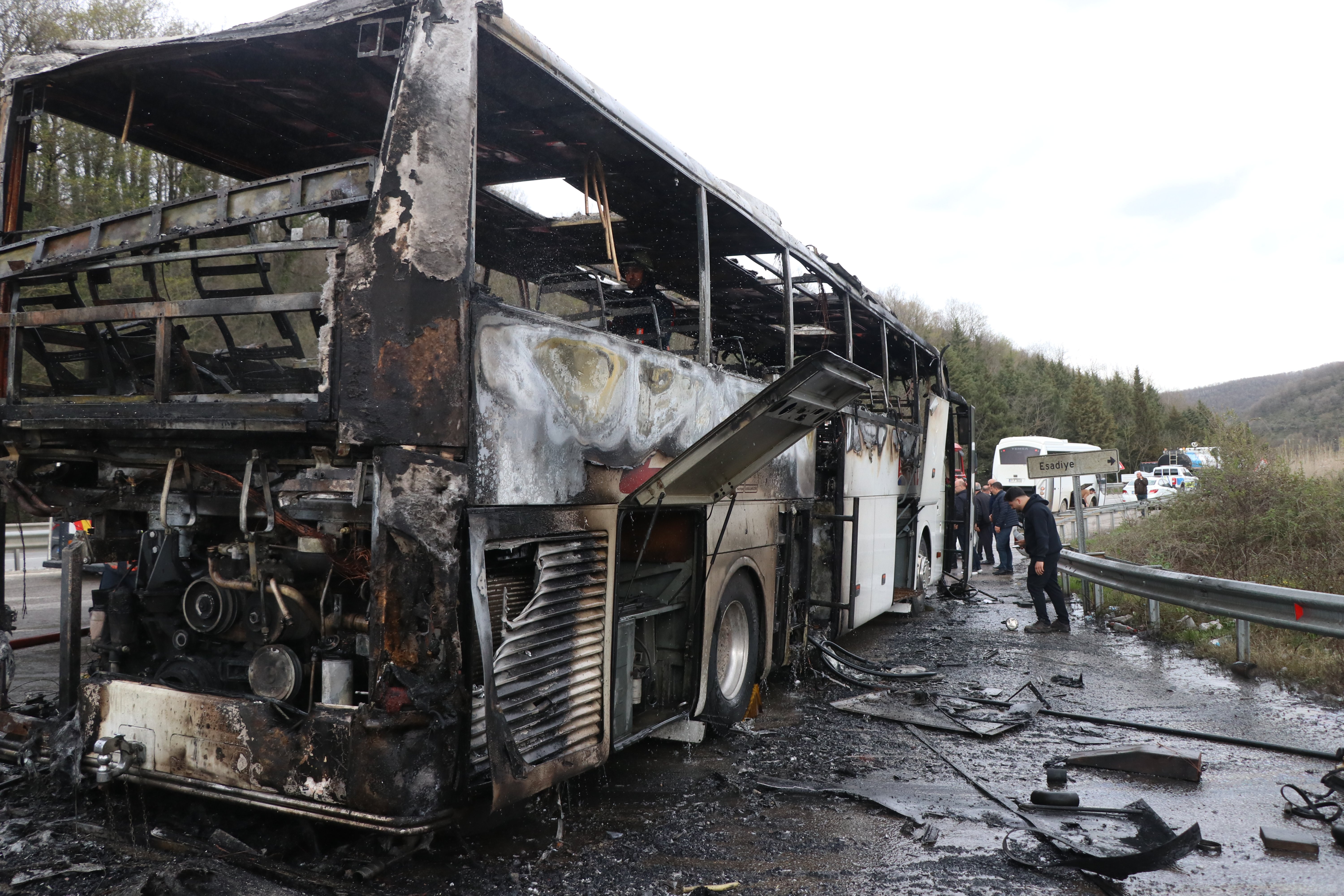 Bursa'dan Yalova istikametine seyir halindeki V.K'nin kullandığı 77 ADC 025 plakalı yolcu otobüsünün motor kısmında yangın çıktı.