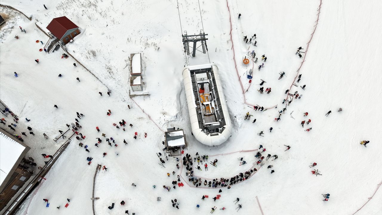 Ilgaz Dağı'nda bulunan Yurduntepe Kayak Merkezi'ndeki yoğunluk dronla görüntülendi.