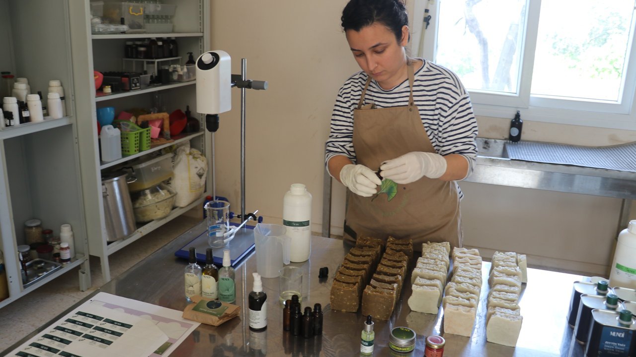 Narenciye ve zeytin yetiştiriciliği yapan eşine de destek olan Davulcu, yetiştirdiği aromatik bitkilerden elde ettiği sabun, krem ve yağları internet üzerinden Türkiye'nin çok sayıda iline pazarlıyor.