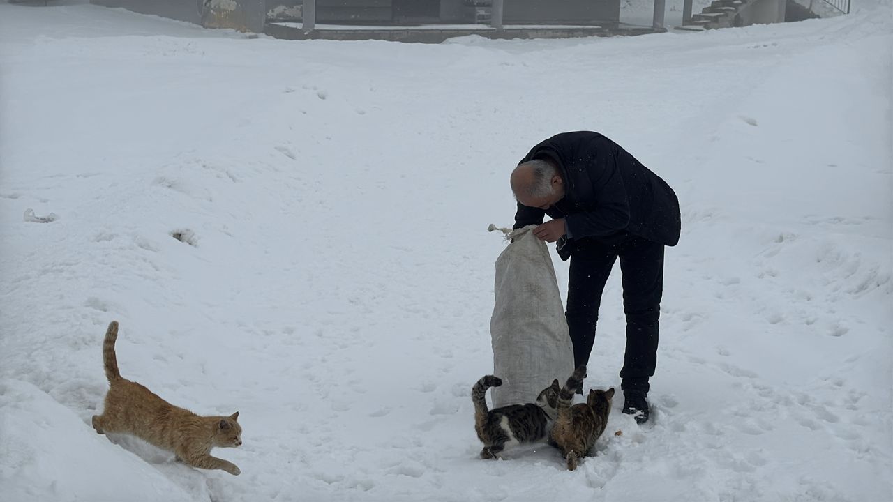 Kış boyunca köyde kalan Sarıkaya Köyü Muhtarı Ali Rıza Bildik, soğuk havalarda hayvanların aç kalmaması için çevredeki ilçe ve beldelerde bulunan fırınlardan bayat ekmek toplayarak sokak hayvanlarını besliyor.