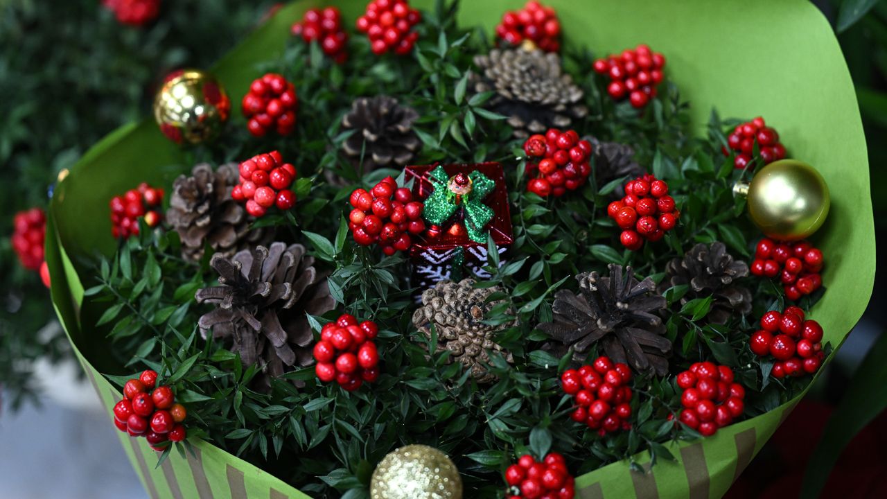 İki farklı bitkinin bir araya getirilmesiyle hazırlanan çiçek, özellikle yeşil yaprakları üzerinde yer alan kırmızı meyvesinin verdiği renkle hemen her yaştan insanın dikkatini çekiyor.