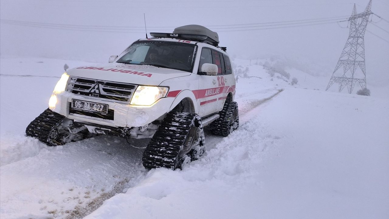 Yolun kar nedeniyle kapalı olması üzerine, köye paletli ambulans sevk edildi.