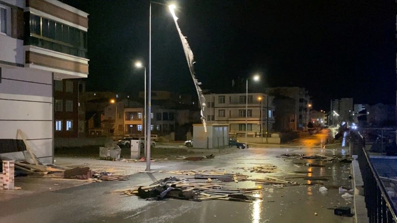 Sorgun ilçesi Osman Çavuş Mahallesi'nde bir apartmanın çatısından kopan parçalar yola savruldu, bazı araçlarda hasar meydana geldi.